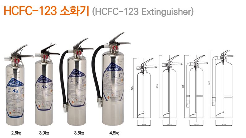 청정소화약제 HCFC-123(Dichlorotrifluoroethane)을 사용하여 ODP, GWP 및 대기잔존년수가 낮은 친환경제품입니다