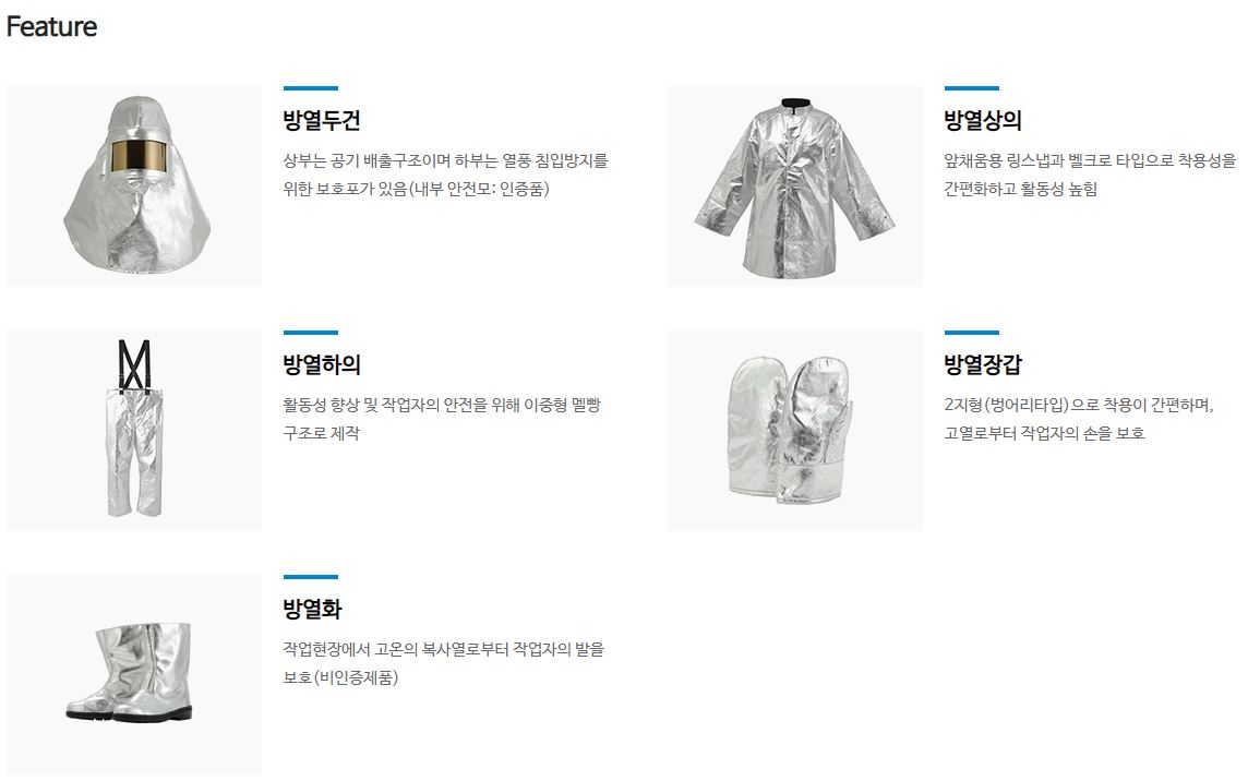 고온의 작업현장에서 발생되는 뜨거운 열을 지속적으로 역반사시켜 장시간의 근접작업을 도와주는 초경량 방열복